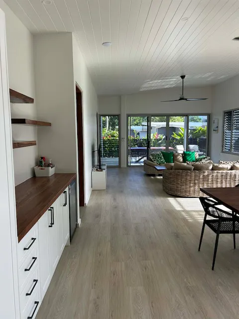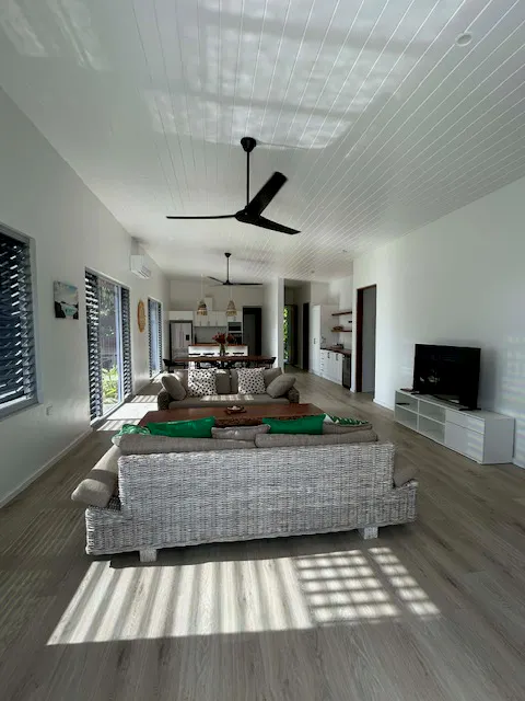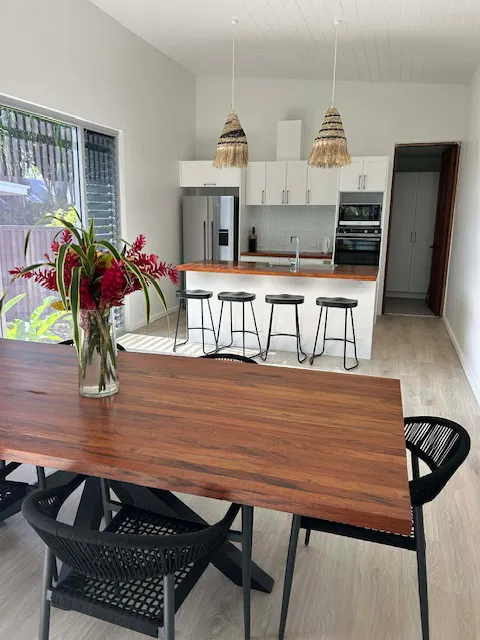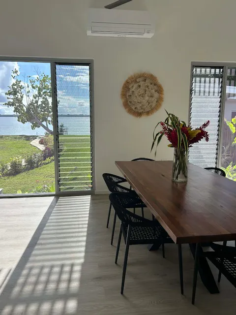 These are not traditional holiday units — they are very modern deluxe residences, thoughtfully designed for guests who want style, comfort and flexibility while enjoying the beauty of Espiritu Santo. Every residence features a spacious open-plan kitchen, dining and lounge area, beautifully furnished interiors, air conditioning throughout, and direct access to an outdoor deck overlooking the beach and lagoon. Each bedroom has its own private ensuite, creating an easy and comfortable stay for couples, families or groups sharing together.